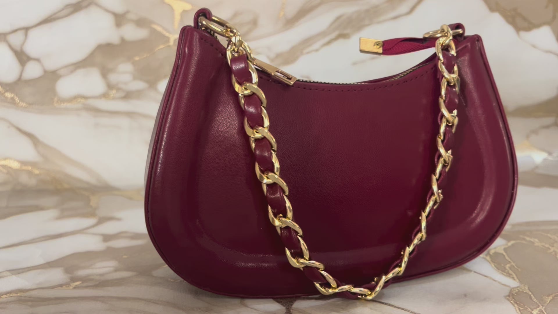 Our architectural, half moon shoulder bag, now has a new dimension. It can be converted into a wrist bag just with a quick move. The shoulder strap can easily be removed, so you can slung it from your wrist or use as a clutch. It has plenty of room inside for your essentials including a large phone, small wallet, and 300 ml water bottle. Made from smooth leather and has a suede top with two-way zip fastening. Interior features two slip pockets. Crafted from synthetic leather. Canvas lining. Brushed gold hardware. Two interior pockets. Detachable and adjustable shoulder strap. h:21 X w:28 cm (8 1/2 X 11 1/4 in.)